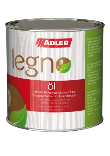 Создавая благородную шелковисто-матовую поверхность, масло для дерева ADLER Legno-Öl для внутренних работ не образует полимерной пленки, в следствии чего дерево продолжает «дышать» после окрашивания. Придает также поверхности водо- и грязеотталкивающие свойства, противоскользящие и антистатические свойства. Поверхность становится устойчива к механическим воздействиям и моющим средствам. Абсолютно безвредно, применяется для покрытия детских кроваток и игрушек (ÖNORMS1555 или DIN53160 «Свойства защиты от пота и слюны» и ÖNORM EN 71-3 «Безопасность игрушек»)